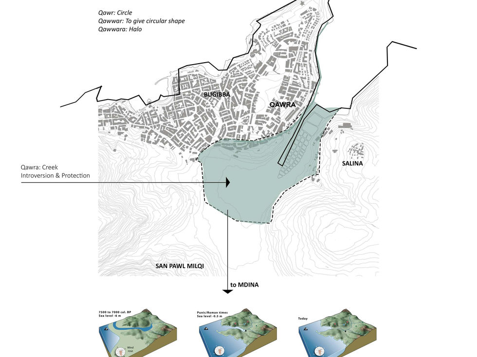 The redevelopment of the ODYCY Lido in Qawra, is deeply rooted in the historical and environmental significance of the region. Qawra, characterized as a meeting point between land and sea, has evolved over the years through human intervention and natural processes. This project aims to interpret these relationships by adopting a design which integrates natural and cultural elements, uncovering lost memories, and rewriting the Lido into the ongoing urban narrative. A key intervention included the enhancement of the coastal promenade, working to create a continuity with Bugibba and St. Paul’s Bay, and reorienting the peninsula away from the inland sprawl towards Qawra creek and the boundless sea beyond. In doing so, both the historic and urban legibility of the place were reproposed, allowing for a greater degree of integration with its surroundings, and a more contextual approach to the overall design. Weaving a narrative that traces the site’s etymology and historic layers, the project ties back to its sense of place, linking the land to the sea; the site’s history to the present. The juxtaposition of variety and the rhythmic repetition of elements is used as an architectural device echoing the potential for journey and return symbolic of the seashore itself – urban nodes allow the pedestrian to slow down, rest and ponder while being placed in constant tension with the potential offered by the sequentially layered adjoining spaces. By fragmenting the lido volumes, pedestrian flow was invited deep into the project, proposing a dynamic, village-like environment that seeks to enrich the overall guest experience, and integrate the public realm back into the promenade experience. Moreover, this allowed for a futureproof, flexible framework that allows for the project’s continued evolution. Overtly aware of the public realm, the ODYCY Lido redevelopment is not merely limited to accommodating tourists introspectively, and in so doing, the confident architectural gesture actively contributes to Qawra’s sense of place. Through this contextual approach, the project seeks to create a balance between the past and the present, the commercial and the public, the manmade and the landscape.